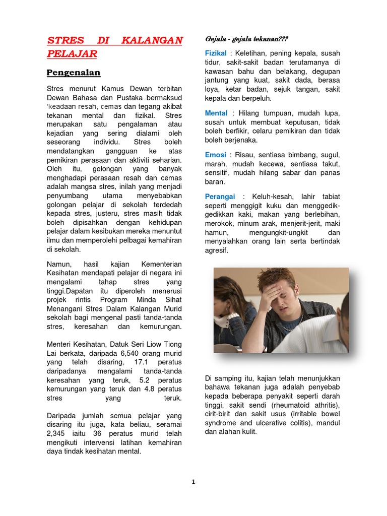 Antara punca berlakunya stress dalam kalangan pelajar ialah faktor-aktor dalam dalam diri iaitu tidak menghargai nikmat syukur. Anda boleh download panduan tersebut. Tekanan Perasaan Kemurungan 1.